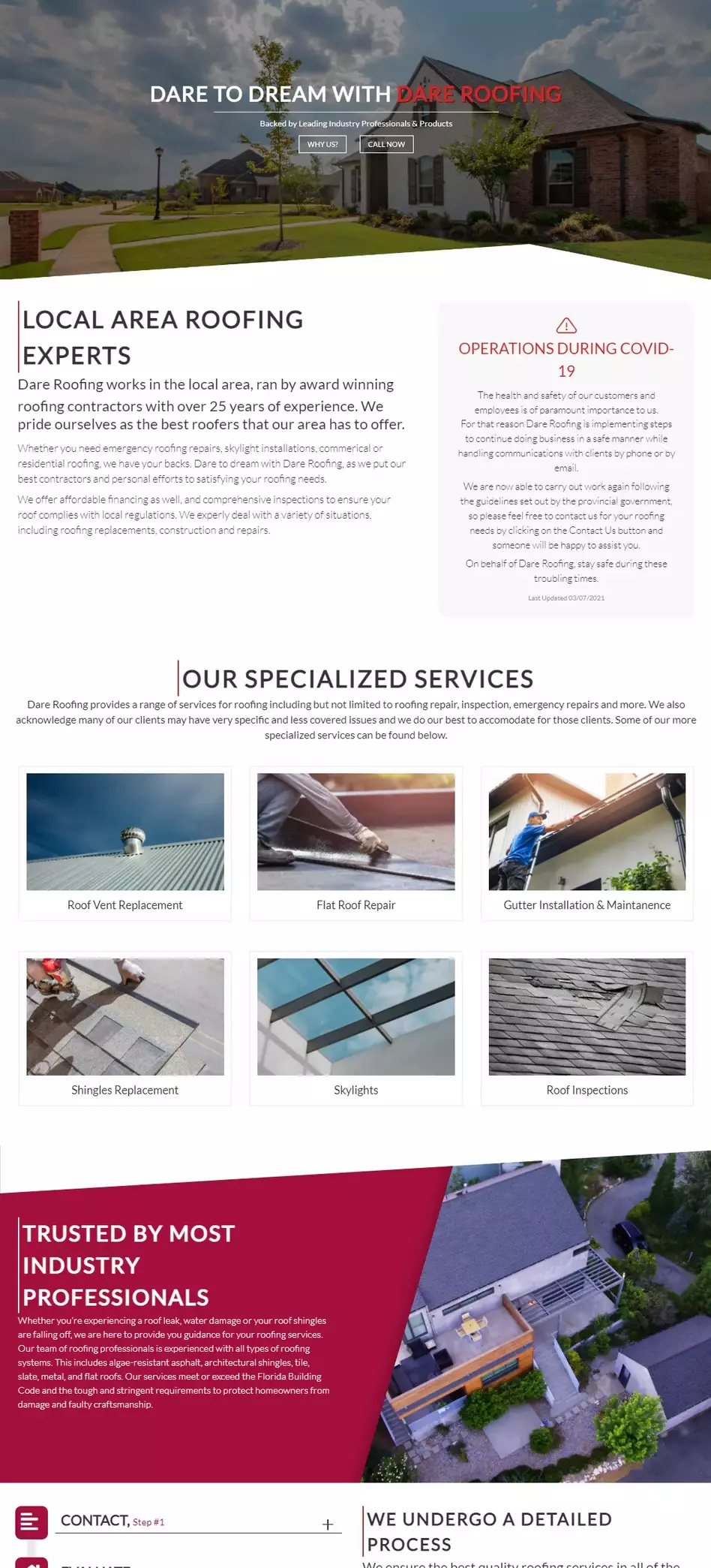 "Dare Roofing expertly combines the need for a practical and informative website with sleek designs and an eye pleasing experience for any visitor.